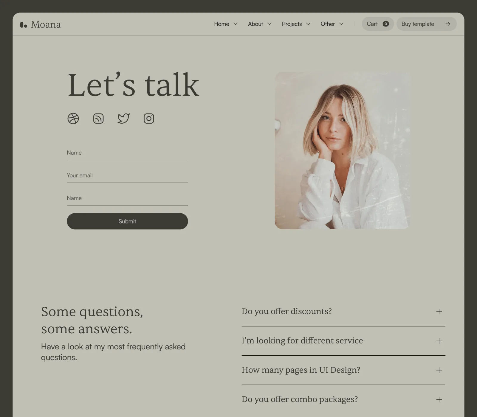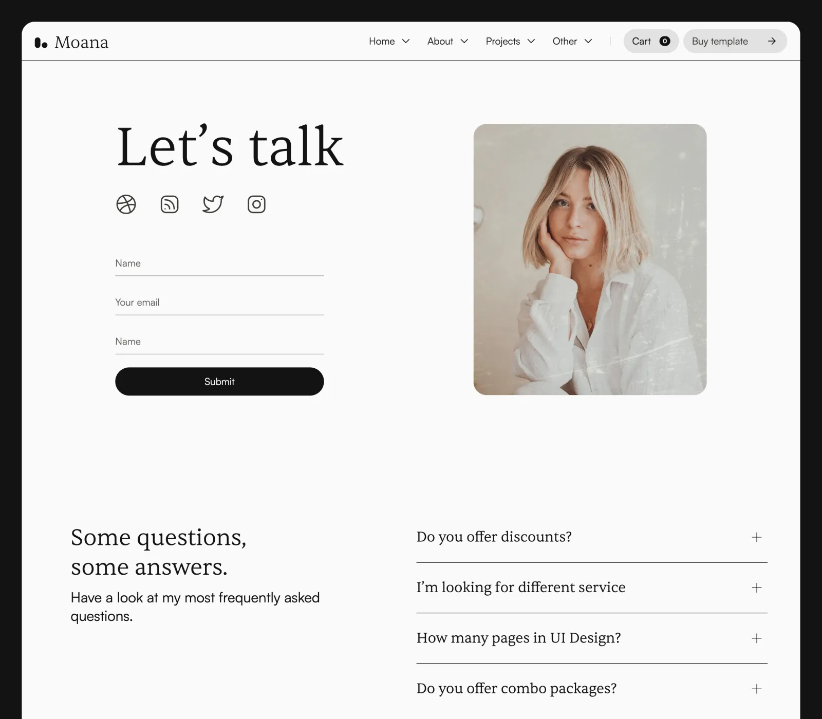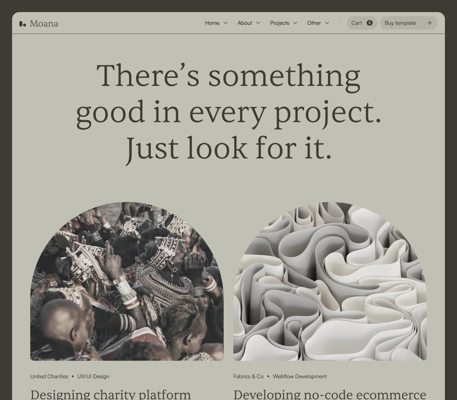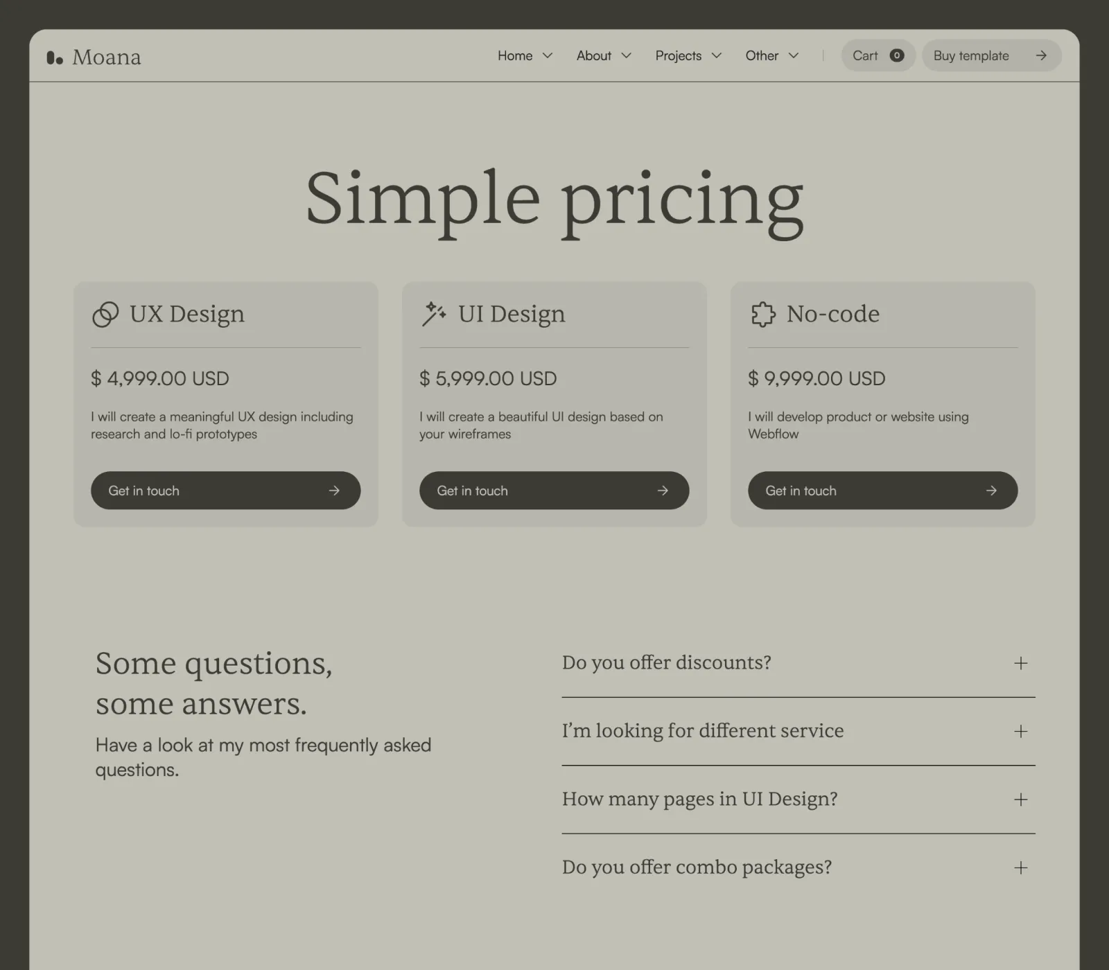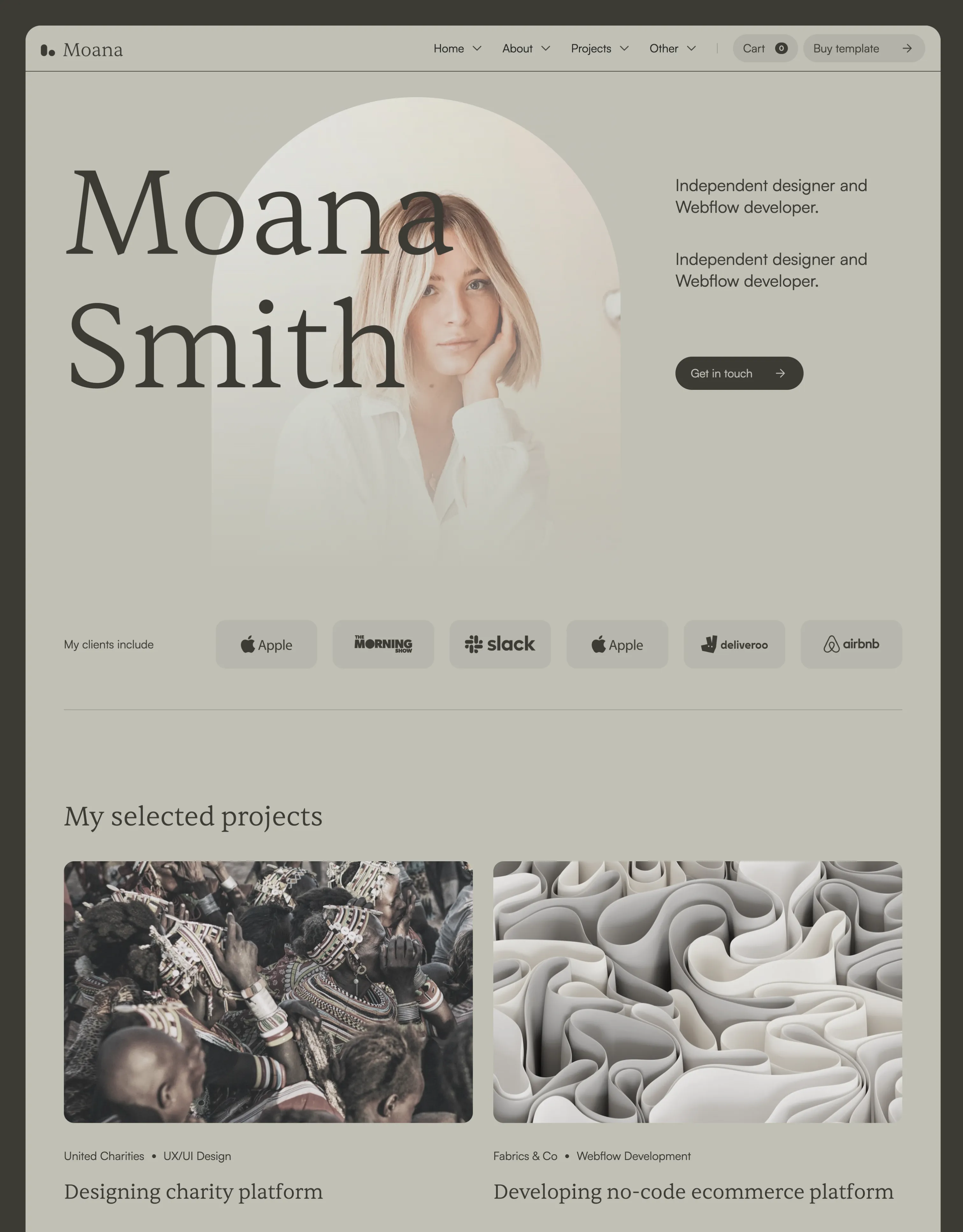 Moana Webflow Portfolio Template comes with eCommerce set up, so you can start selling your services straight away.