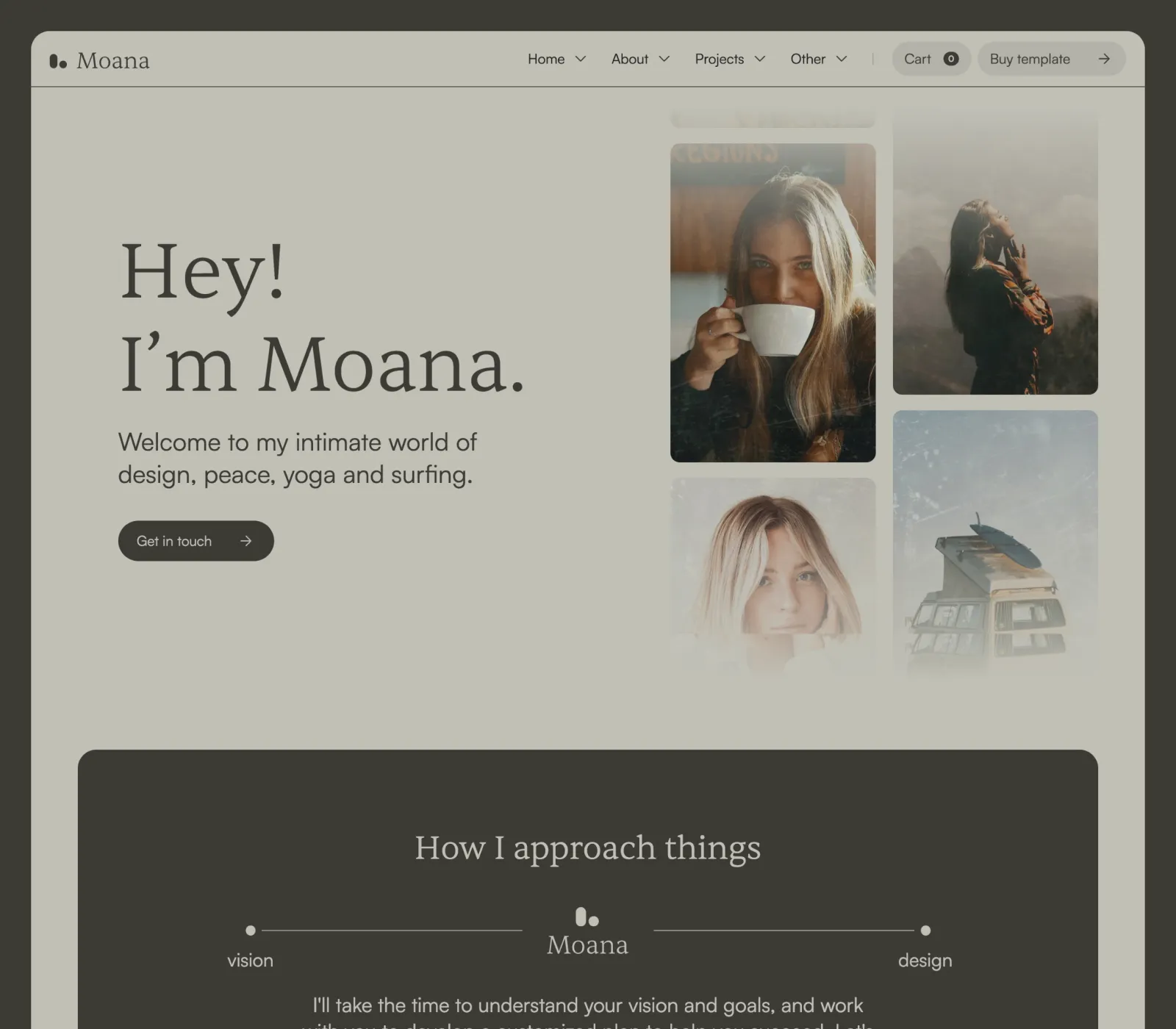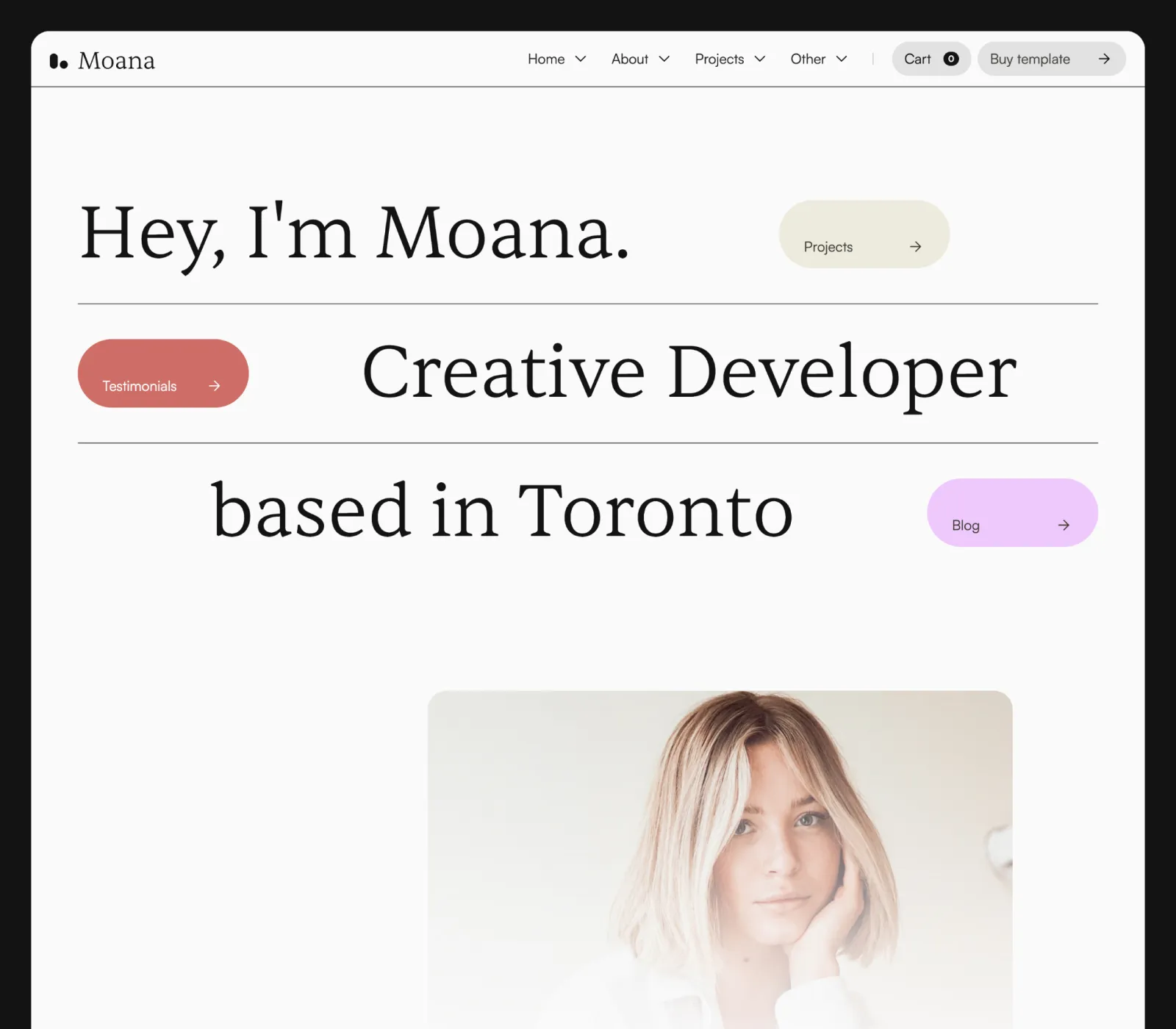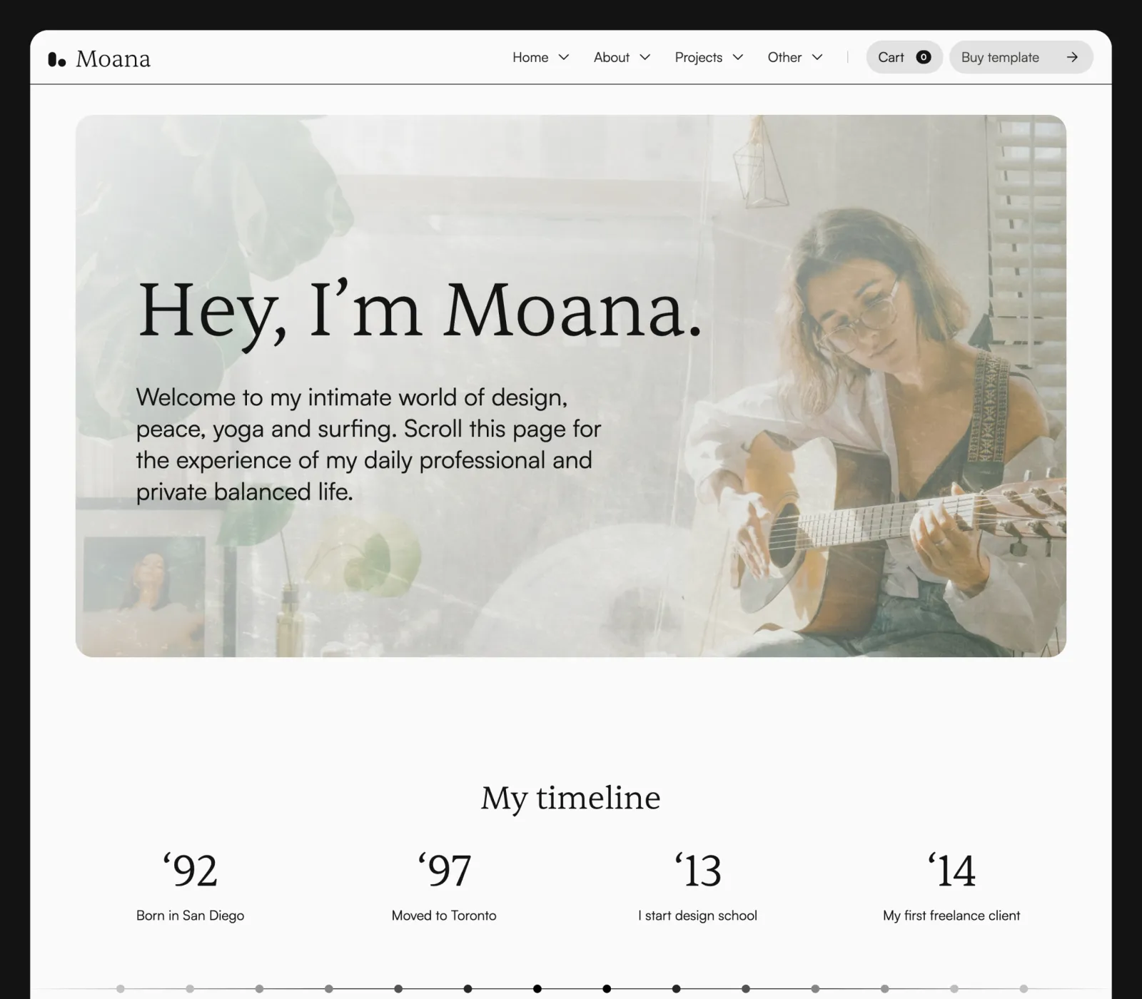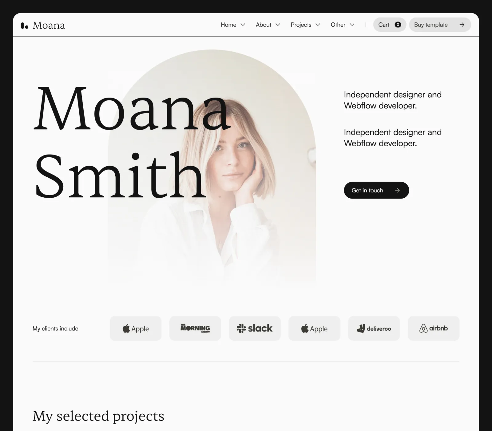 Moana includes a blog and projects collection that is made on the powerful Webflow CMS. This will let you add new content extremely easily.